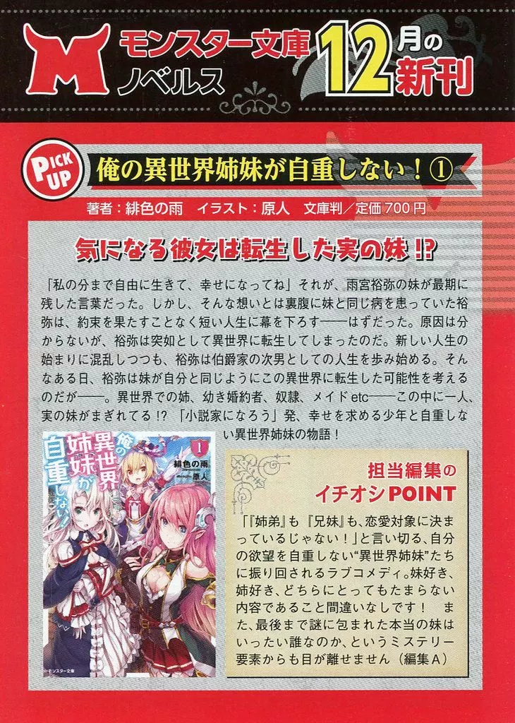 販促品 リーフレット・小冊子 モンスター文庫 ノベルス 12月の新刊 2016 販促冊子