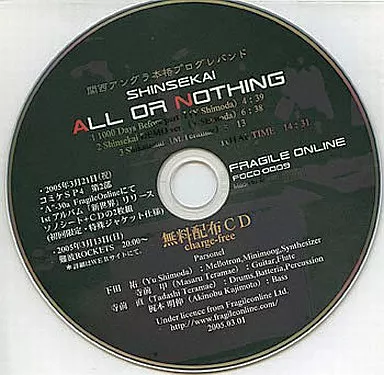 同人音楽CDソフト SHINSEKAI ALL OR NOTHING / FRAGILE ONLINE