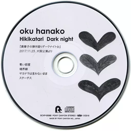 こちらの商品は、LIVE Blu-ray「奥華子の弾き語りダークナイト☆PCSC盤」予約者限定で配布されたCDになります。