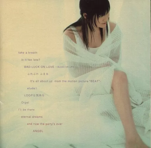 (1)take a breath(2)is it too late?(3)BAD LUCK ON LOVE~BLUES ON LIFE~(4)ふわふわ ふるる(5)It’s all about us(from the motion picture”BEAT”)(6)etude1(7)LOOPな気持ち(8)Orgel(9)I’ll be there(10)eternal dreams(11)and now the party’s over(12)ANGEL
