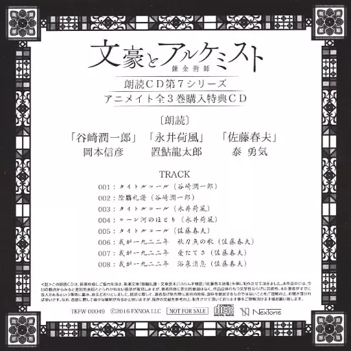ゲームミュージックCD 「文豪とアルケミスト」朗読CD 第7シリーズ アニメイト全3巻同時購入特典CD