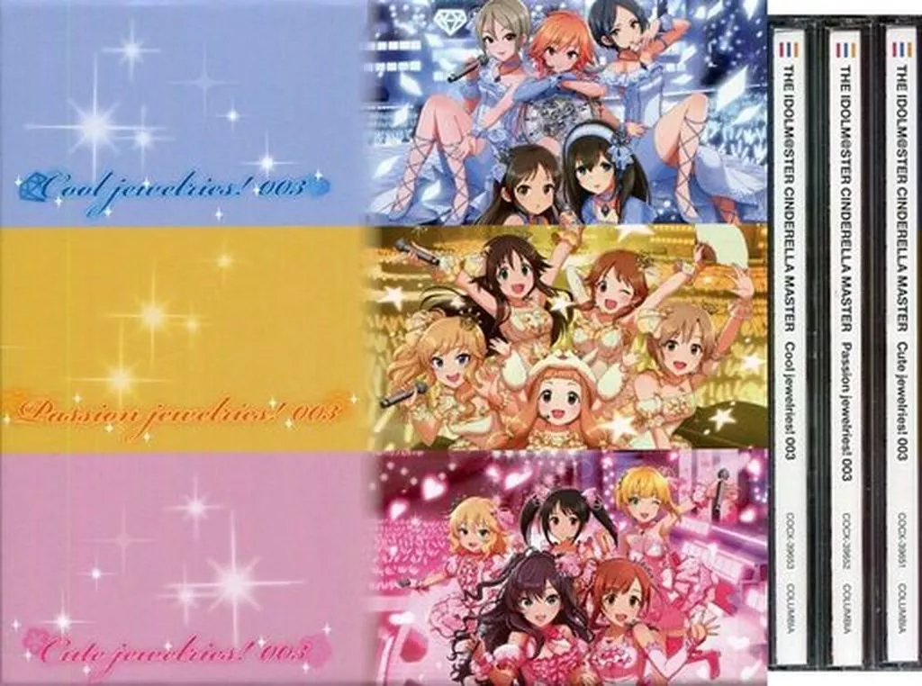 「THE IDOLM@STER CINDERELLA MASTER Cute jewelries! 003」「THE IDOLM@STER CINDERELLA MASTER Passion jewelries! 003」「THE IDOLM@STER CINDERELLA MASTER Cool jewelries! 003」の3枚をとらのあな連動購入特典収納BOXにセットした商品になります。