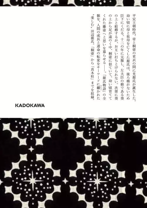 日本文学角川文庫/桐壺から真木柱まで。元祖イケメン光の君の、幼少期-源氏38歳の冬までを収録、波瀾万丈のストーリーを楽しく読み解いた源氏物語入門書。古典文学に造詣が深く、男女の機微に鋭い田辺聖子が、田辺ことばで綴る魅力満載の現代語訳。