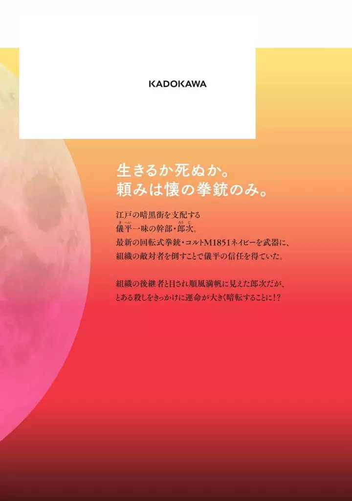 江戸の闇を裂いて銃撃の宴がはじまる!江戸の暗黒街を支配する札差・祝屋儀兵一味の幹部で「残月」の通り名を持つ郎次。組織の跡目と目されていた郎次だったが、ある殺しを機にその運命は暗転することになり!?