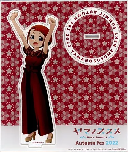 商品解説■「ヤマノススメ Next Summit オータムフェス2022」の「アクリルスタンド」になります。【商品詳細】サイズ:一枚板/約H165×W140mm、本体/約H150×W100m、台座/約H40×W60mm(各キャラクターによりサイズが異なります)素材:アクリル樹脂