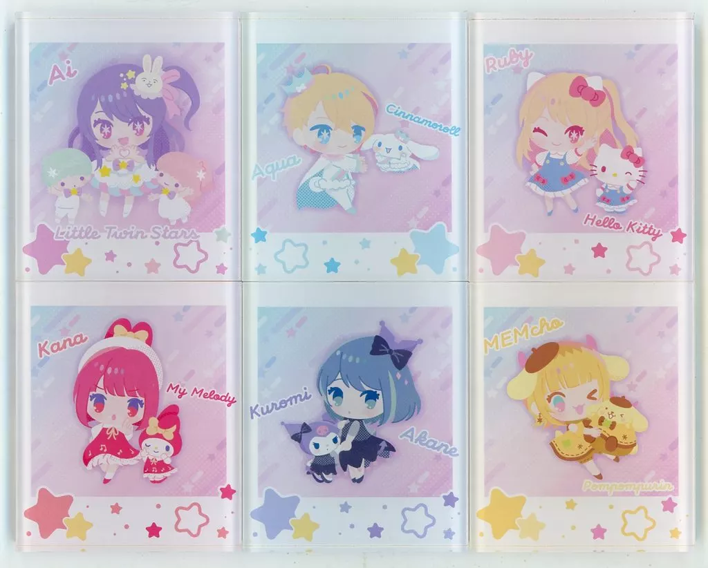 商品解説■ 「【推しの子】×サンリオキャラクターズ」より「トレーディングアクリルブロック」全6種セットが登場です。【商品詳細】<セット内容>アイ×リトルツインスターズアクア×シナモロールルビー×ハローキティ有馬かな×マイメロディ黒川あかね×クロミMEMちょ×ポムポムプリンサイズ:約高さ86mm×横72mm×奥行8mm