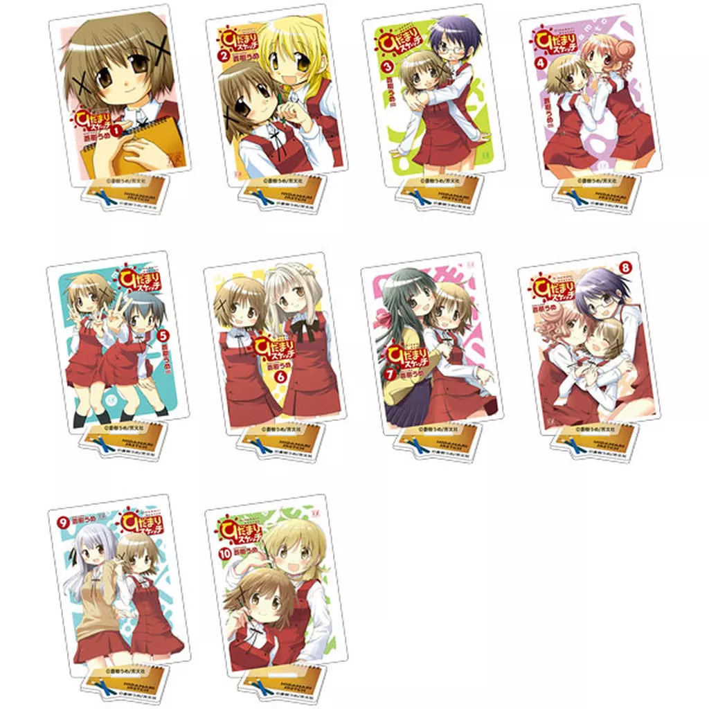商品解説■こちらの商品は「ひだまりスケッチ 表紙アクリルスタンドコレクション」の全10種セットです。「ひだまりスケッチ」より、表紙アクリルスタンドコレクションが登場!【商品詳細】<セット内容>1巻2巻3巻4巻5巻6巻7巻8巻9巻10巻サイズ:本体:約6×8cm、台座:約4×3.5cm素材:アクリル(C)蒼樹うめ/芳文社