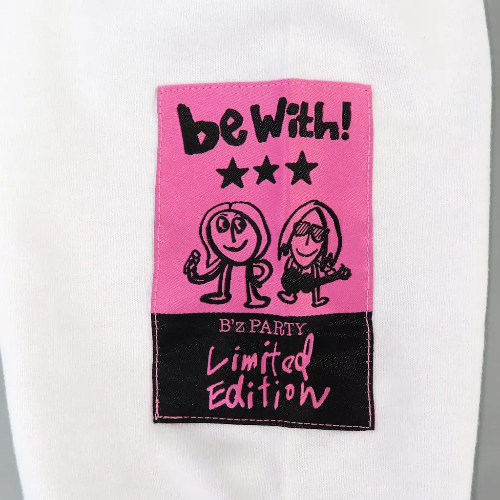 B’z PARTYのロゴと会報誌のタイトル「be with!」がデザインされた特別なロングスリーブTシャツ!袖口のポップなイラストにも注目です!