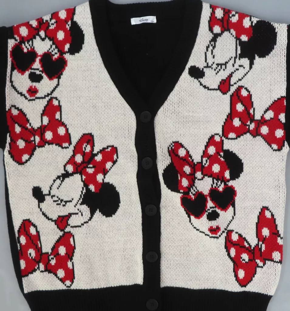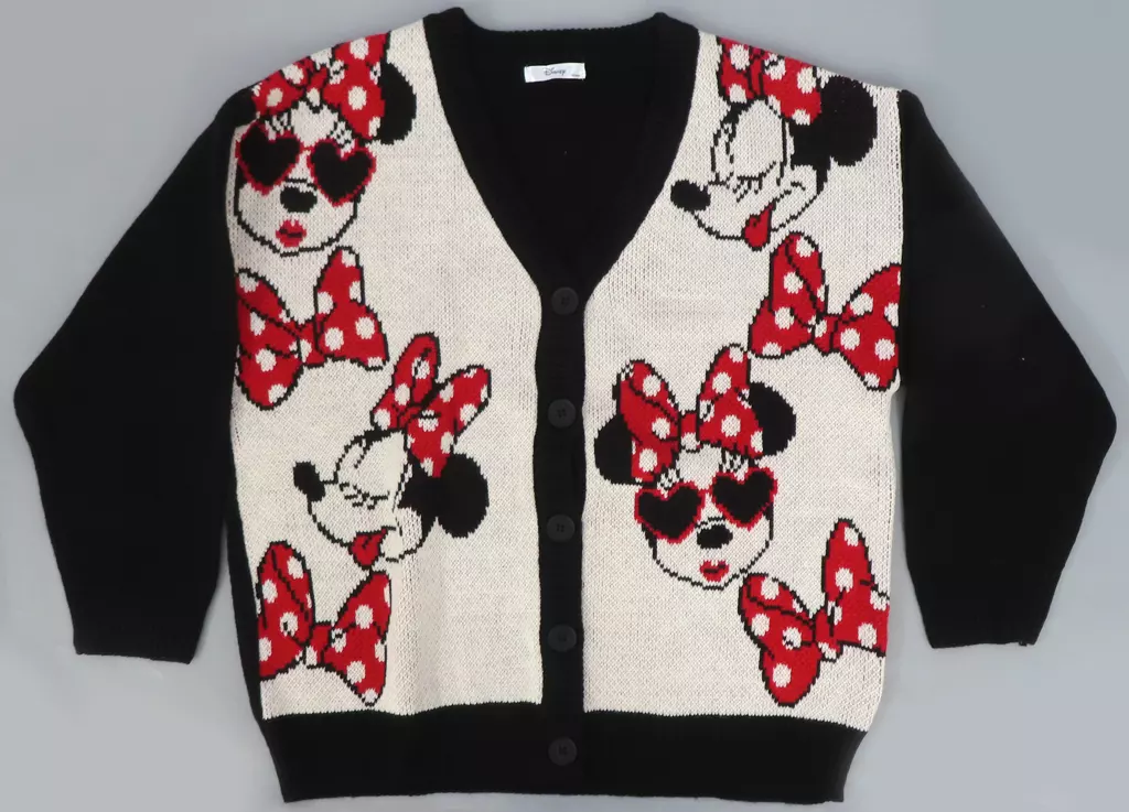 アウターウェア ミニーマウス(総柄) ニットカーディガン 中黒 Mサイズ 「ディズニー×吉田さんち×しまむら」