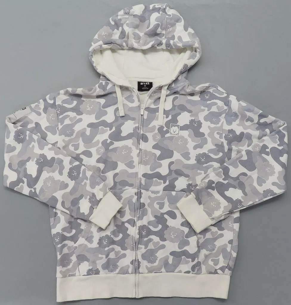 商品解説■「BT21」のグッズです。「BT21」はLINE FRIENDSとBTS(防弾少年団)のコラボレーションにより誕生したキャラクターブランドです。迷彩柄のジップアップパーカーです。【商品詳細】サイズ:XLカラー:ホワイト×グレー素材:綿100%