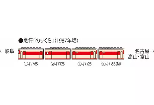[キハ65] + [キロ28] + [キハ28] + [キハ58(M)]