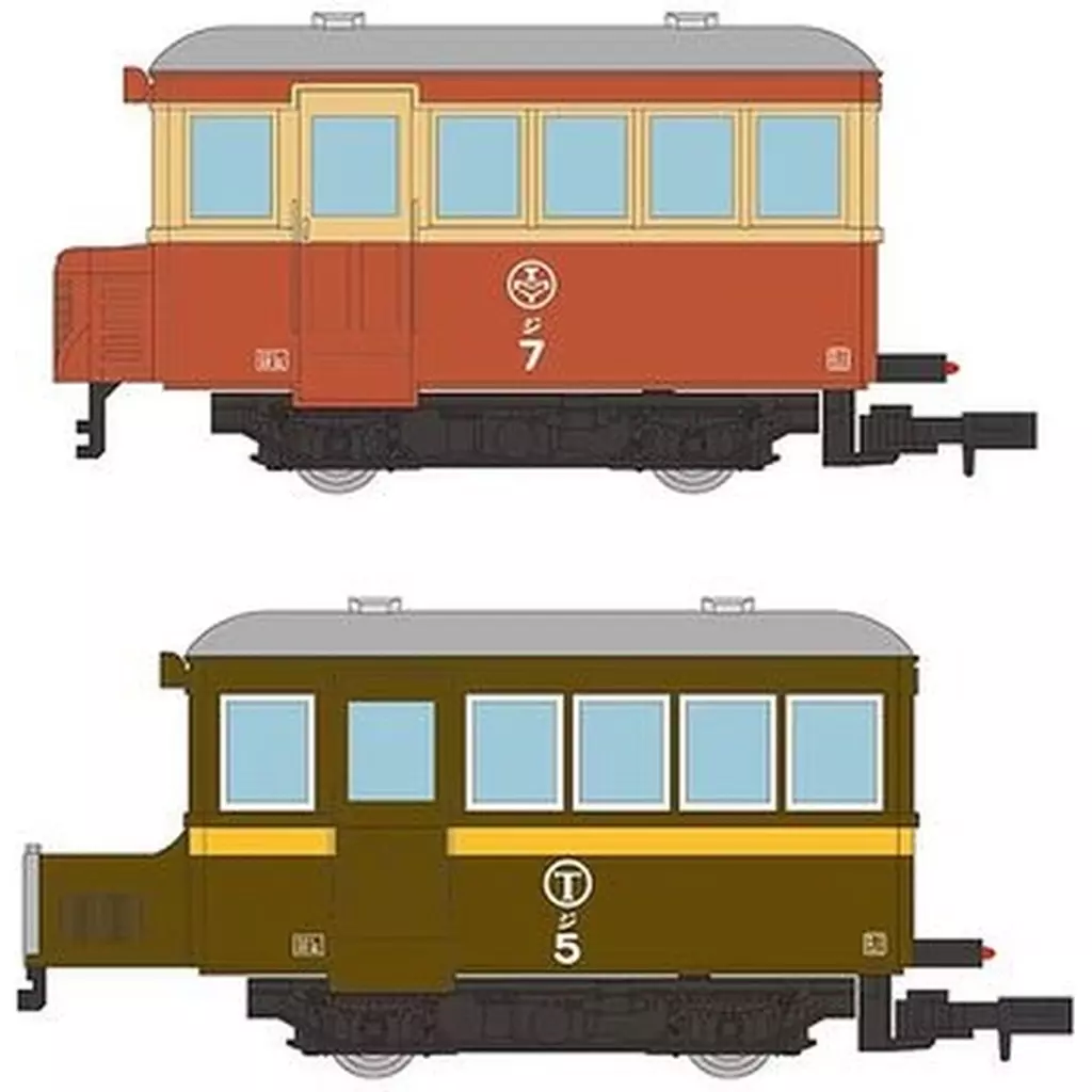 ジ10・ジ2のセットは猫屋線新塗装と直通用路面電車塗装、ジ7・ジ5のセットは猫屋線旧塗装と茶色塗装としており、既に発売済みの各車と合わせてお楽しみいただけます。