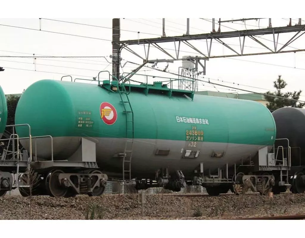 タキ43000形は1967年に登場した43t積ガソリン専用貨車です。1989年には各部の軽量化によりタンク体の大型化を図った44t積のグループが登場、これらは20万番代の車番となっています