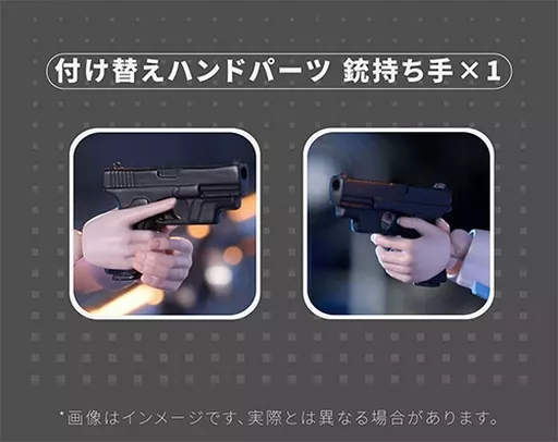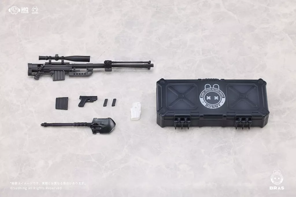 フィギュア本体、バニー耳、交換用表情パーツ×3、交換用手首パーツ×12(左右各6)、バッジ、ピストルホルスター、戦術装備固定用レッグリング、アームシールド、台座、支柱、支柱ジョイント×2、ランナーパーツ×2、説明書