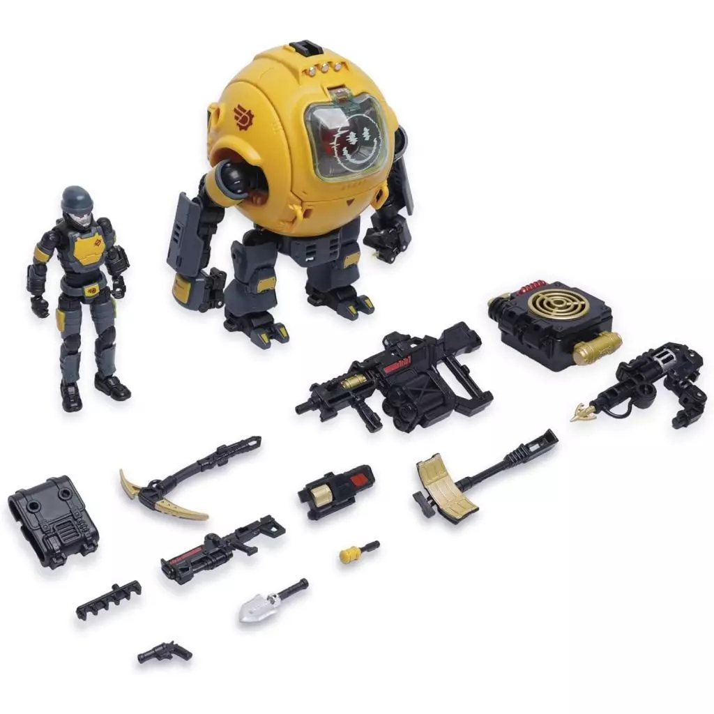 機体×1、モジュラーライフル×1、鶴嘴×1、肩部武装×1、ハンドキャノン×1、
