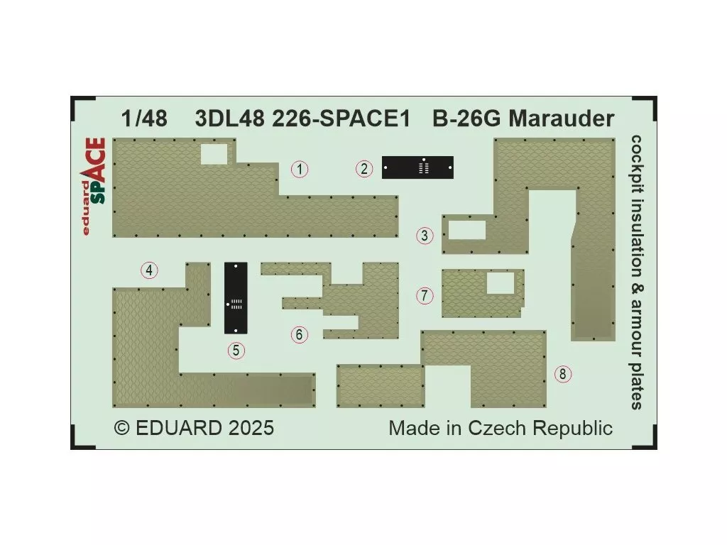 プラモデル 1/48 B-26G マローダー コックピット防音シート & 防弾板 スペース内装3Dデカールw/エッチングパーツセット (ICM用) 「SPACEシリーズ」 ディティールアップパーツ [EDU3DL48226]