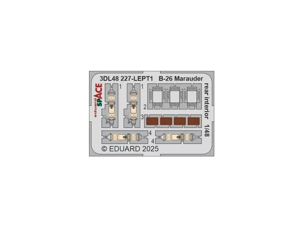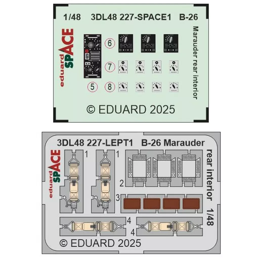 プラモデル 1/48 B-26G マローダー 胴体後部内装 スペース内装 3Dデカールw/エッチングパーツセット (ICM用) 「SPACEシリーズ」 ディティールアップパーツ [EDU3DL48227]