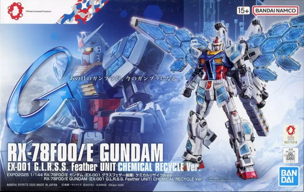 商品解説■「GUNDAM NEXT FUTURE PAVILION」に、1/144 EXPO2025 RX-78F00/E ガンダム (EX-001 グラスフェザー装備) ケミカルリサイクルVer.がラインナップ。