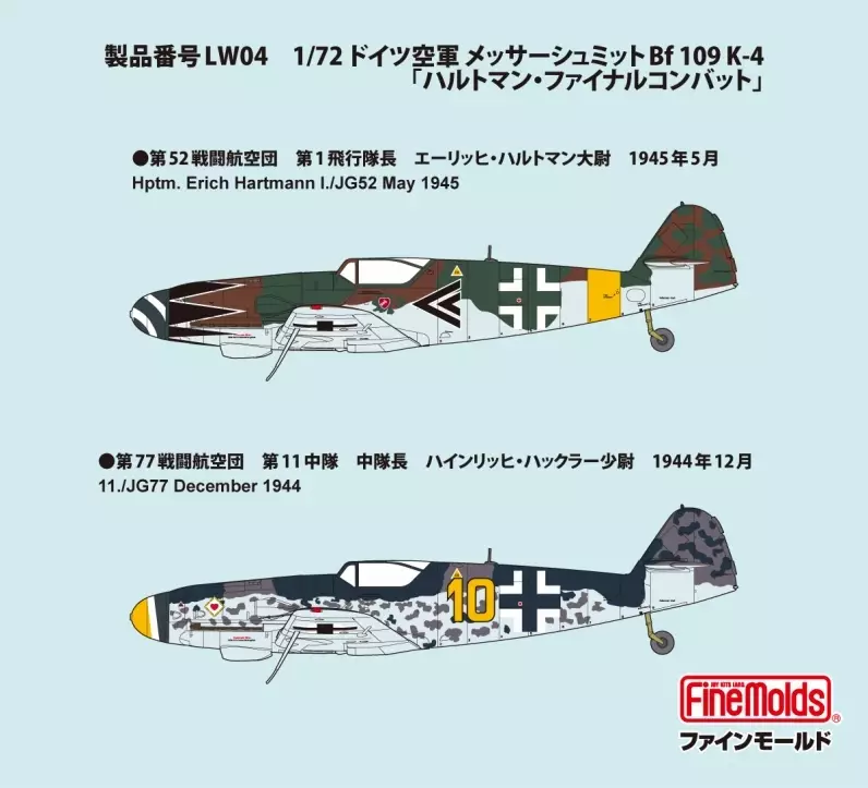 まさに終戦のその日、最後の撃墜を果たしたその機体を再現しました。さらに、JG77所属ハインリッヒ・ハックラー少尉が搭乗した機体のマーキングも収録しています。
