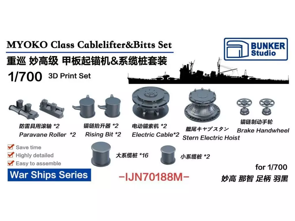 プラモデル 1/700 日本海軍 妙高型用揚錨機 & 係船柱セット ディティールアップパーツ [BSTIJN70188M]