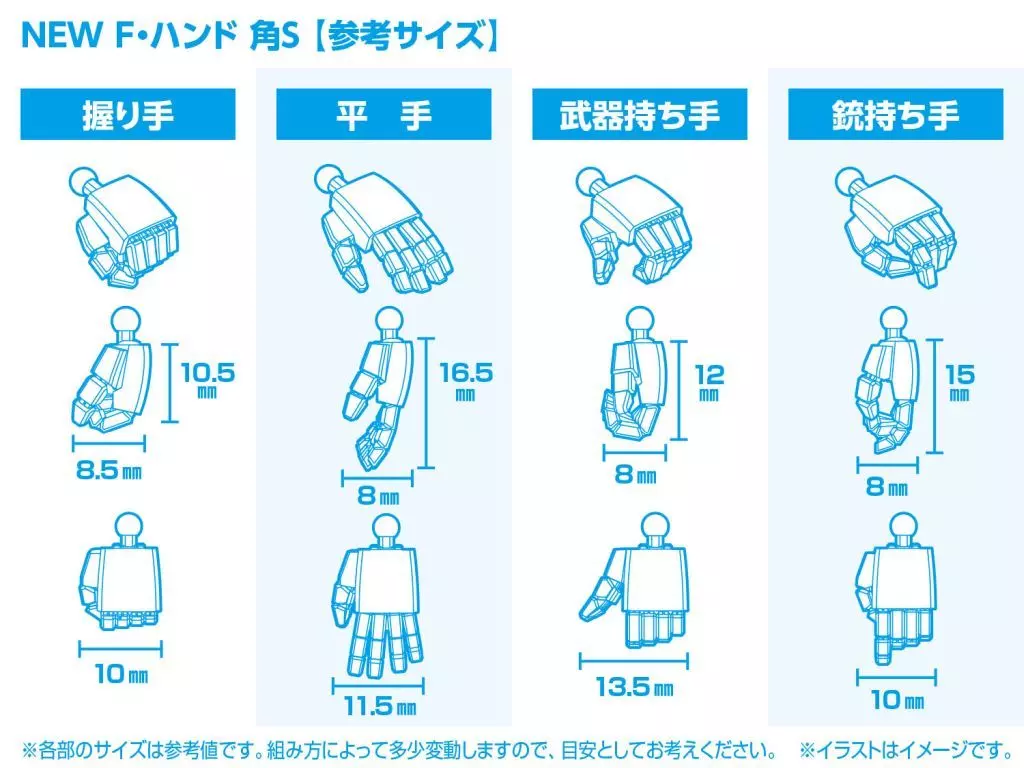 ●セット内容 [握り手]・[平手]・[武器持ち手]・[銃持ち手] 左右 各1セット