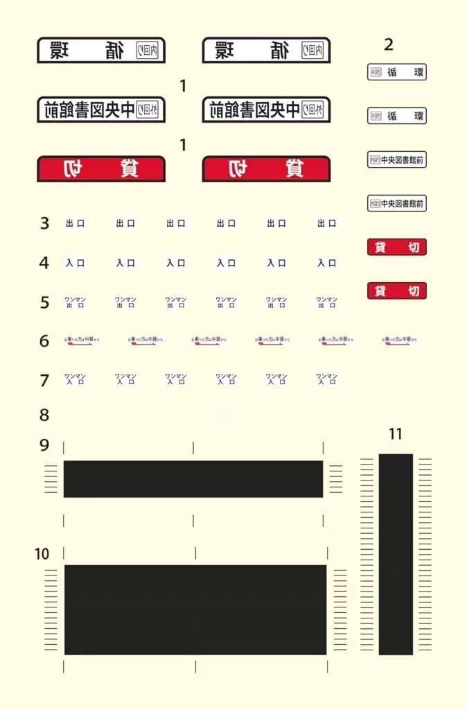 ●シールにはループ化運転に対応した方向幕、サボ、側面窓サッシなどを収録。