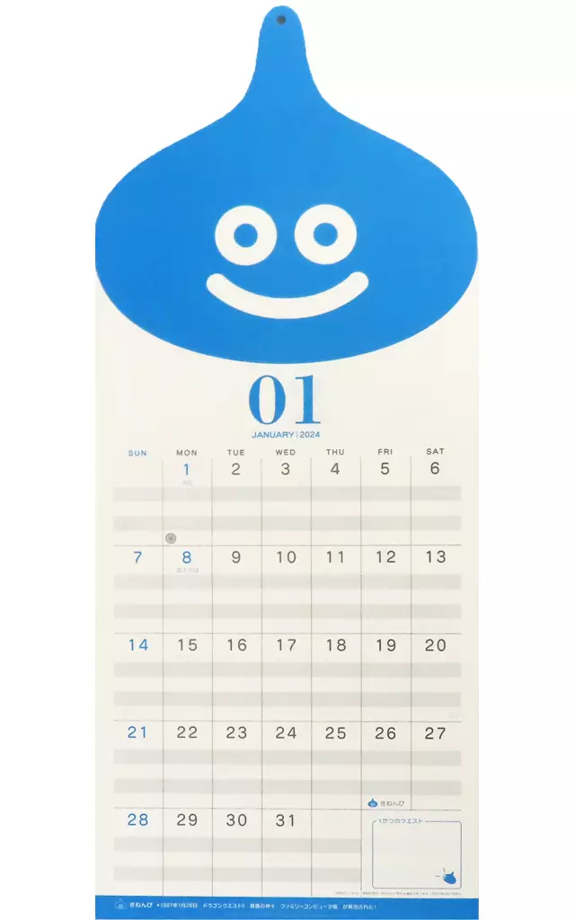 商品解説■スライムが可愛い、シンプルで使いやすい壁掛けカレンダー。