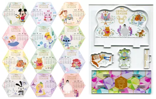 商品解説■期間限定「Disney CRYSTAL SEASON」デザインのクリアスタンド付きの可愛いカレンダーセットです。スタンドは、写真を飾ったり、携帯電話などを置いたりできます。【商品詳細】内容物:カレンダー12枚(期間:2017.1~2017.12)、スタンドサイズ:スタンド縦約6.5cm、幅約9cm※こちらの商品はアミューズメント専用景品となります。