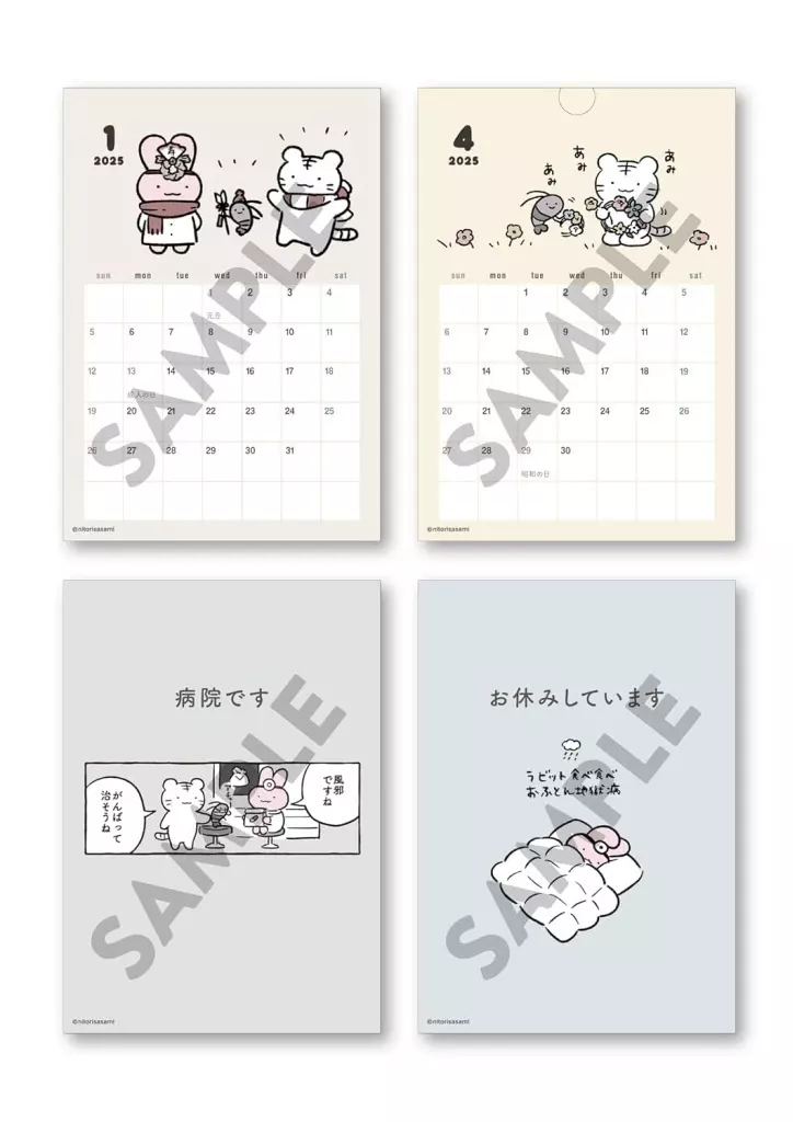カレンダー ホワイトタイガーとブラックタイガー 2025年度卓上カレンダー