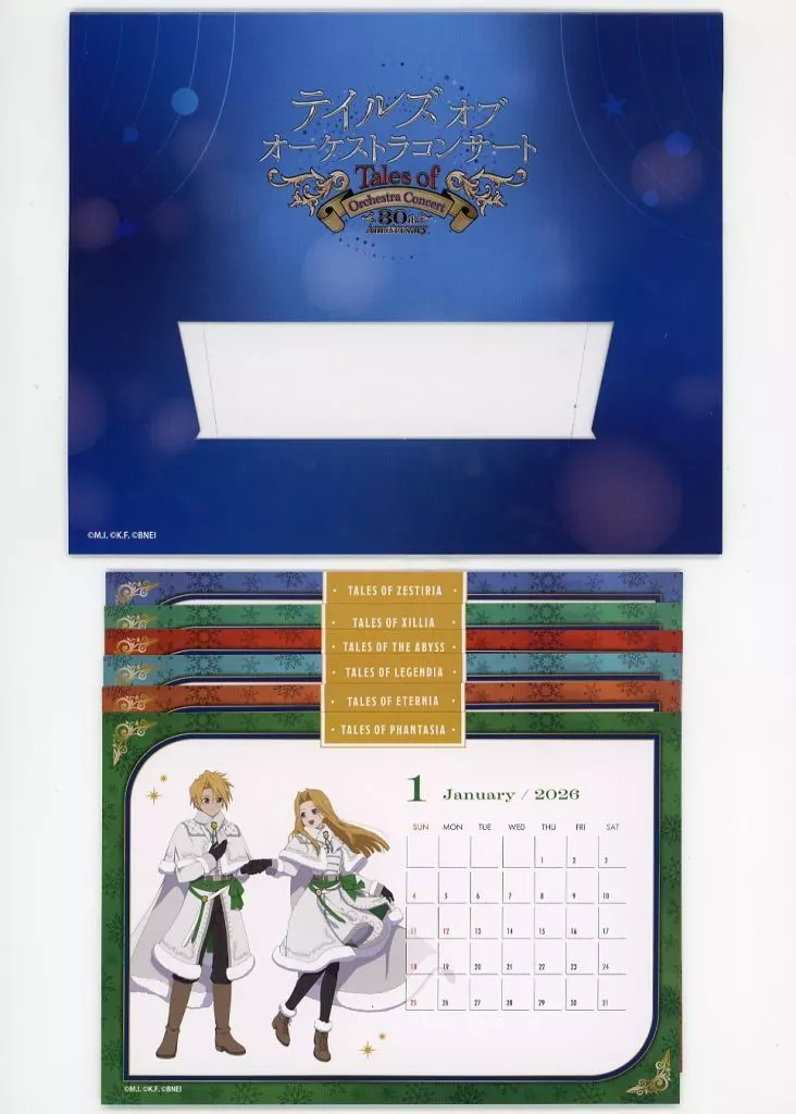 商品解説■「テイルズ オブ シリーズ Tales of Orchestra Concert ~30th Anniversary~」 スペシャルシート限定お土産グッズです。【商品詳細】サイズ:約148×100mm仕様:6枚組、卓上型