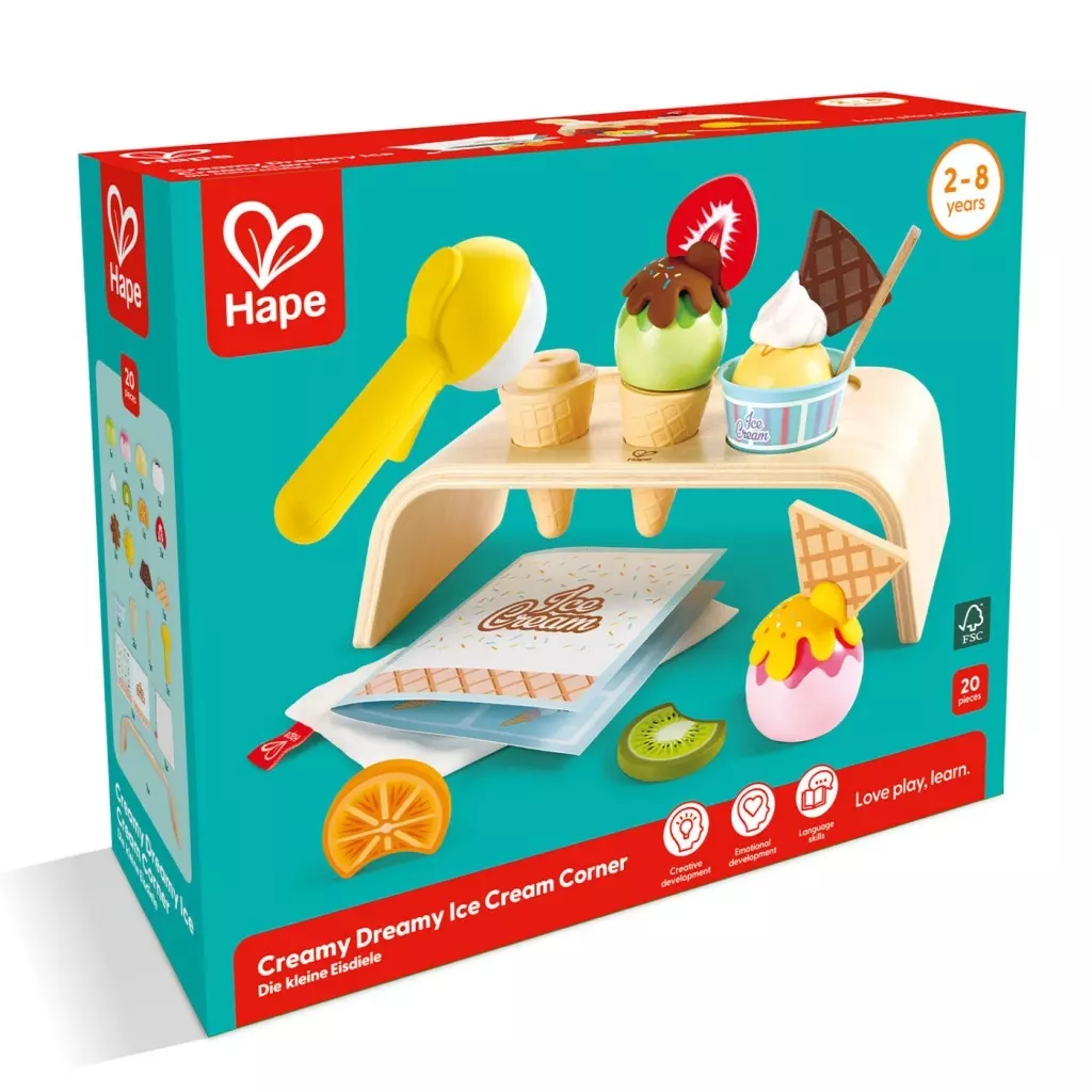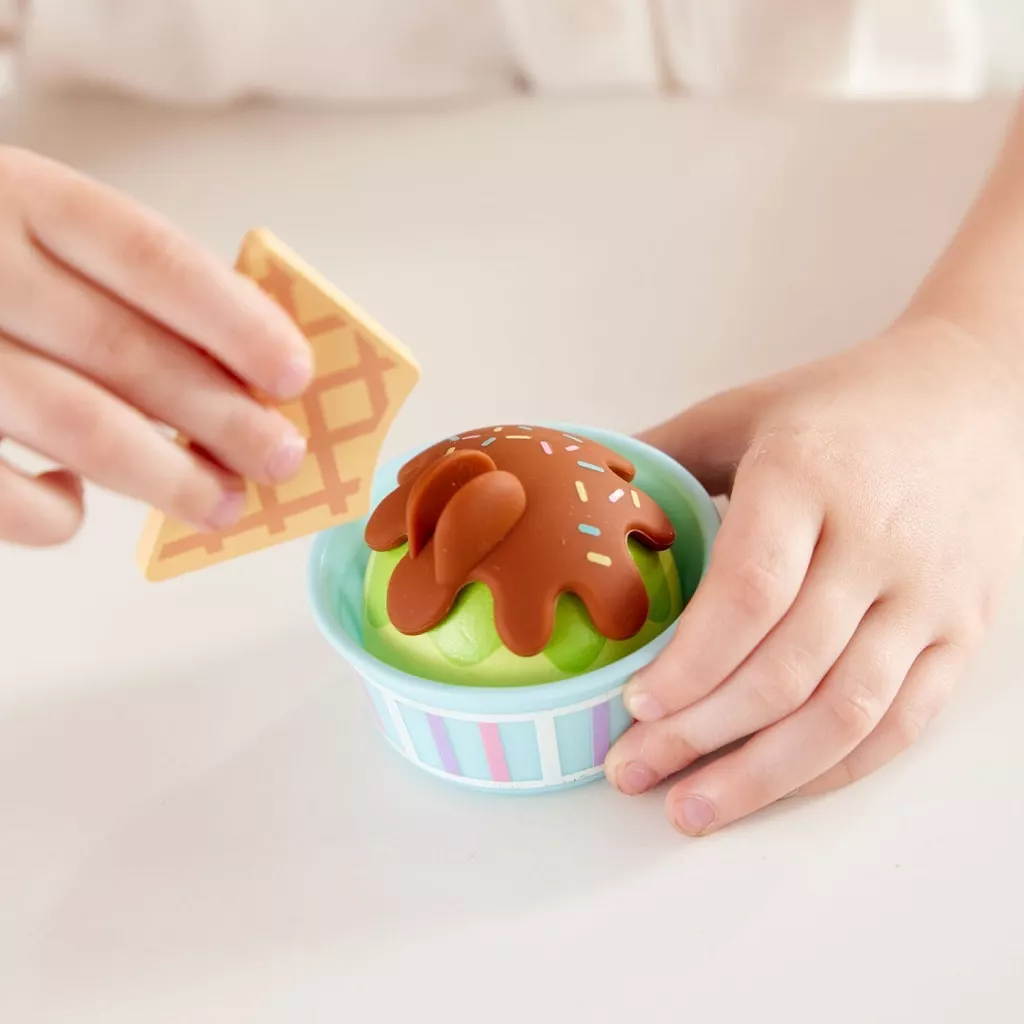 ギミックが楽しいスクープ付き!好きなアイスクリームを取ってレバーをぎゅっと握れば、アイスがポンっと簡単に重ねられます!