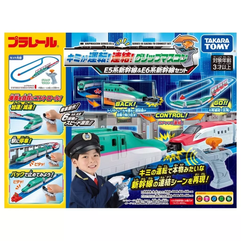 商品解説■加速・減速・停車・バック・6段階のスピード調整!グリップマスコンで簡単操作、自在にコントロール!本物みたいな新幹線の連結遊びを楽しもう!【商品詳細】使用電池:グリップマスコン 単4乾電池×2(別売り)/車両本体 単3乾電池×1(別売り)対象年齢:3歳以上(C)TOMY JR東日本商品化許諾済
