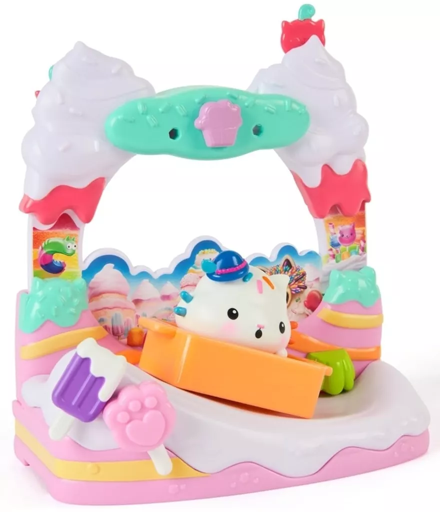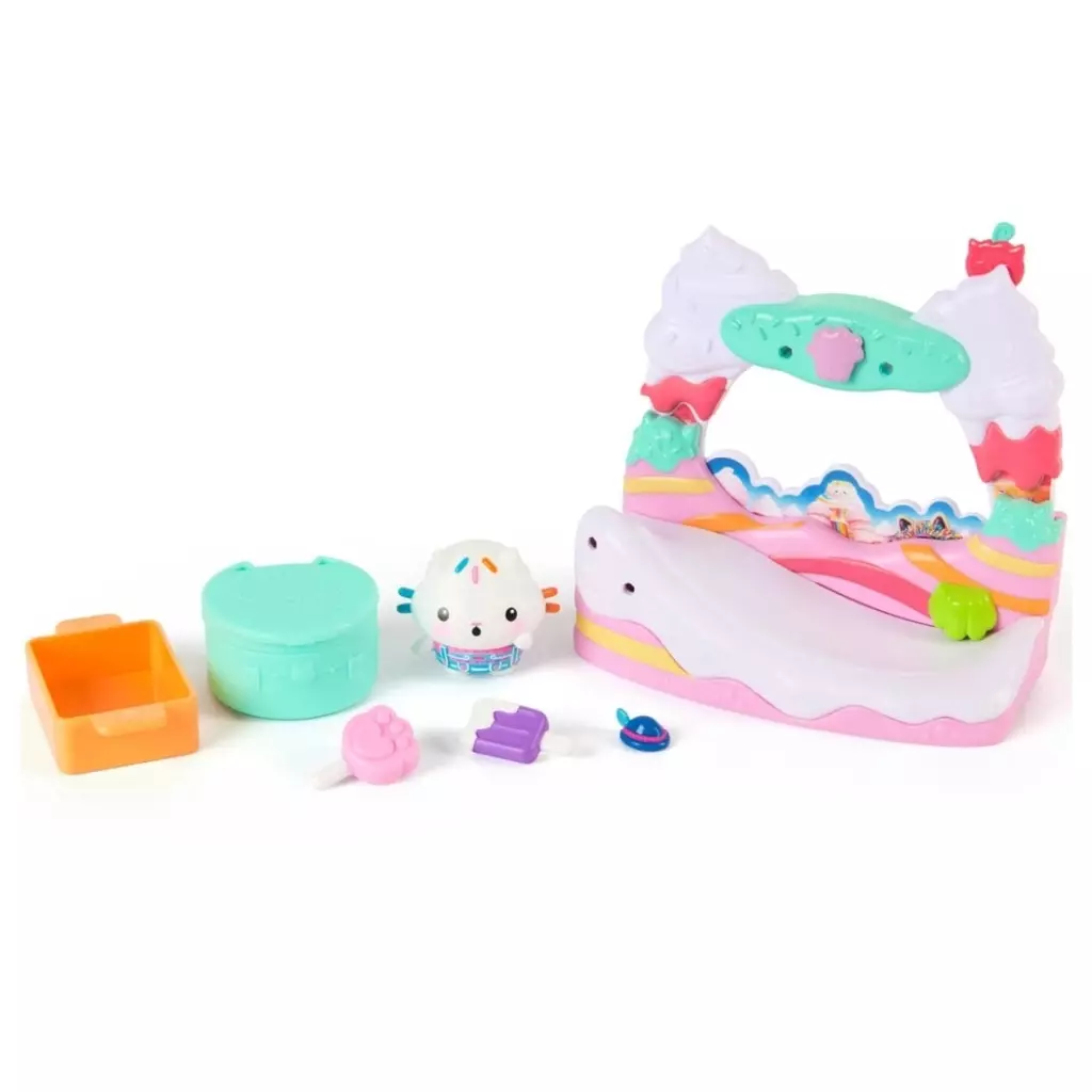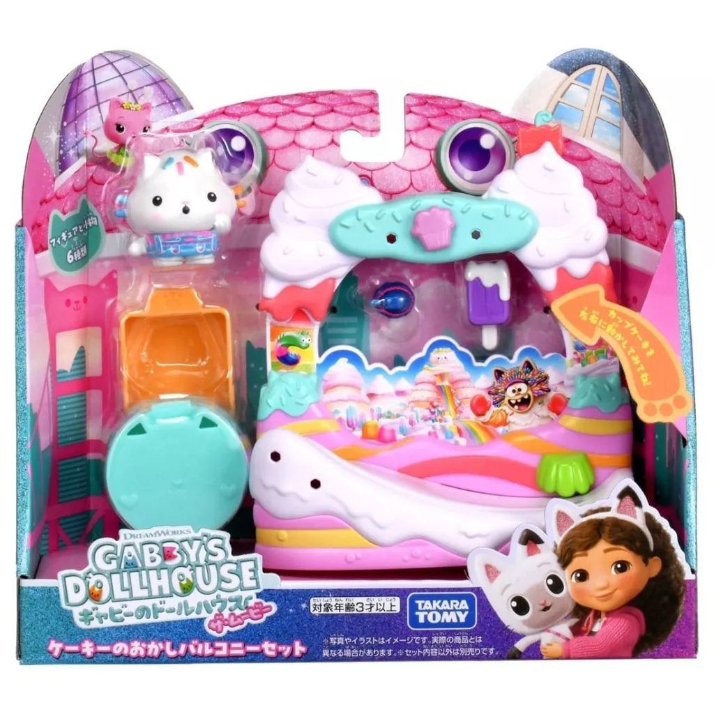 商品解説■『ギャビーのドールハウス ザ・ムービー』の劇中シーンを再現したおかしのバルコニーとケーキーのフィギュア、小物が付いたプレイセットです。付属のそりにケーキーを乗せてバルコニーのスライドを滑らせたり、小物を飾ったりできるよ。【商品詳細】<セット内容>バルコニー、ケーキー、そり、キャンディ、アイス、帽子、ネコちゃんボックス対象年齢:3歳以上