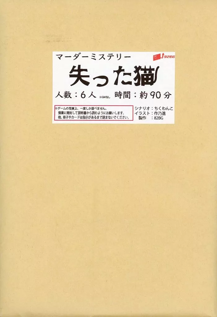 商品解説■ある別荘に集まった6人社長の死と失った猫を巡るストーリー!失った猫とはなんなのか?!それは自分自身の目で確かめろ!こちらは「ゲームマーケット2020秋」で頒布された商品です。■ゲーム概略■プレイ人数:6人プレイ時間:約60~120分シナリオ:ちくわんこ<内容物>シナリオ 6冊手がかりカード 25枚取扱説明書 1枚
