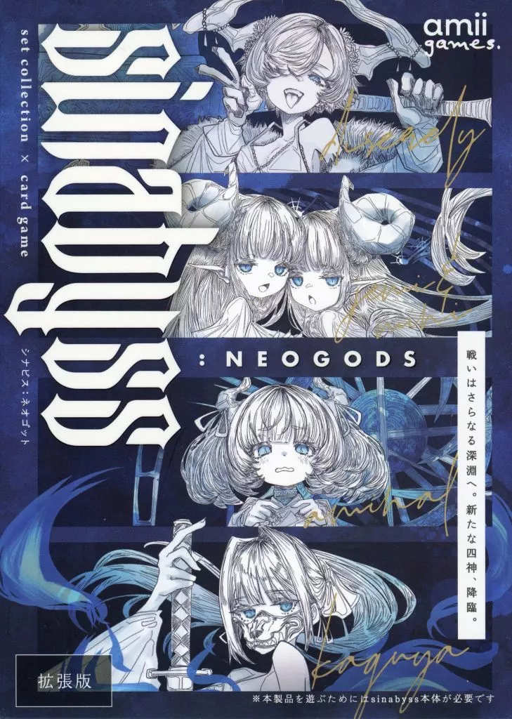 商品解説■2人用セットコレクション×対戦カードゲーム『sinabyss』に拡張キャラクターが初登場未知の個性を持つ4キャラクターが加わり、戦略はさらなる深みへ。こちらは「ゲームマーケット2025秋」に頒布されたものです。■ゲーム概略■プレイ人数:2人プレイ時間:約10~20分対象年齢:10歳以上デザイナー:amii games.<内容物>キャラクターボード 8枚
