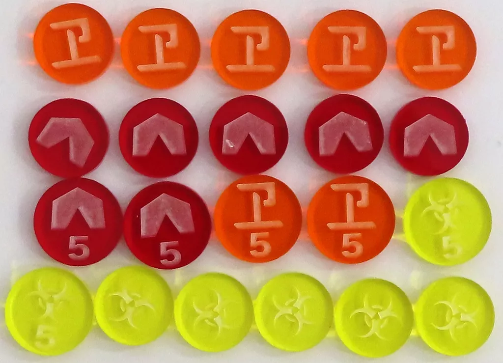 商品解説■テラフォーミングマーズ専用のアクリル資源トークンです。キャンプ(コロニー)/プライスター(動乱)/疾病(3D地形ボックス)各資源の金・銀・銅の資源キューブの代わりに、専用アクリルトークンを使用できます。【商品詳細】<内容物>キャンプ(コロニー)1個分 5個キャンプ(コロニー)5個分 2個プライスター(動乱)1個分 5個プライスター(動乱)5個分 2個疾病(3D地形ボックス)1個分 5個疾病(3D地形ボックス)5個分 2個
