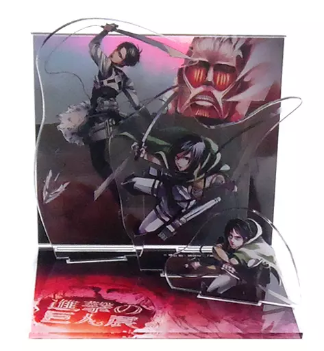 商品解説■こちらの商品は、「進撃の巨人展」公式グッズの『アクリルジオラマ』です。【商品詳細】<セット内容>キャラクターパーツ(エレン&ミカサ&リヴァイ)背景土台キャラパーツ:エレン(約4.5×6.5cm)、ミカサ(約9.5×8.5cm)、リヴァイ(約12.5×7.5cm)背景:約11×12.3cm土台:約11×12.3cm