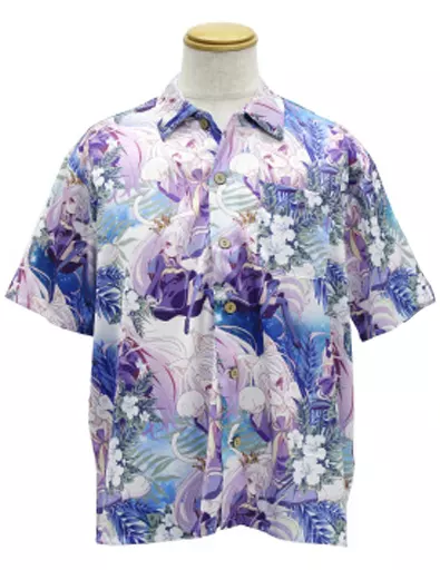 「白」を、南国の海のような爽やかな色味のアロハ柄に溶け込ませた一枚。