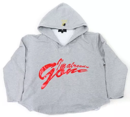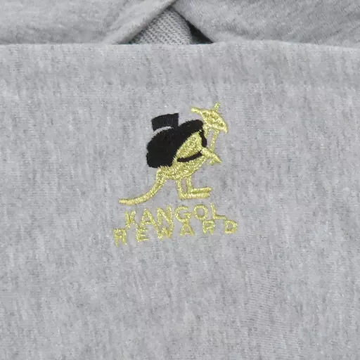 フロントには「I’m Already gone」というメッセージをインパクトのある大判のプリントをフード部分にはリュックを背負ったKANGOLロゴを刺繍で表現。