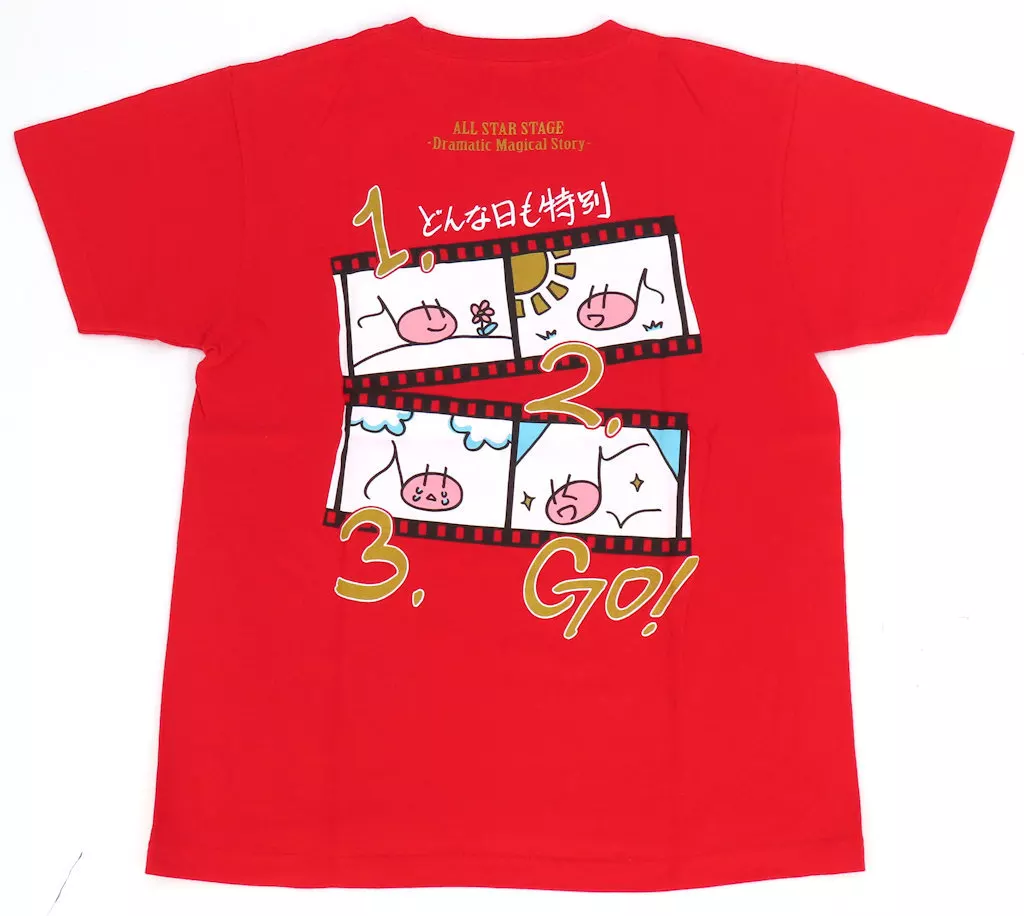商品解説■アイドルのイメージカラーのライブオリジナルTシャツ。背中には、アイドルのソロ曲をイメージした、アイドル直筆のデザインがプリントされています。【商品詳細】カラー:レッドサイズ:M(約着丈:70cm、身幅:52cm、肩幅:47cm、袖丈:20cm)素材:綿100%