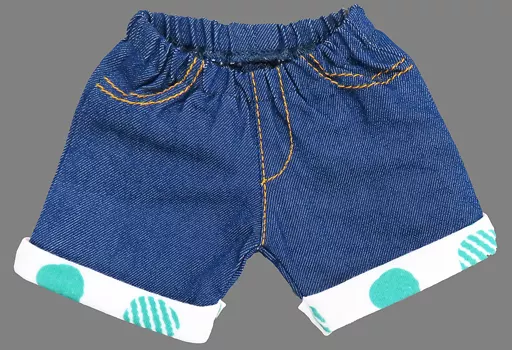 商品解説■「PRINCE CAT」のオリジナルサイズのぬいぐるみ用コスチューム、夏のおでかけにぴったりのハーフ丈のボトムです。裾はTシャツに合わせたカラー違いのドットの折り返しがポイントです。【商品詳細】サイズ:総丈110mm、ヒップ約150mm対応サイズ:PRINCE CAT