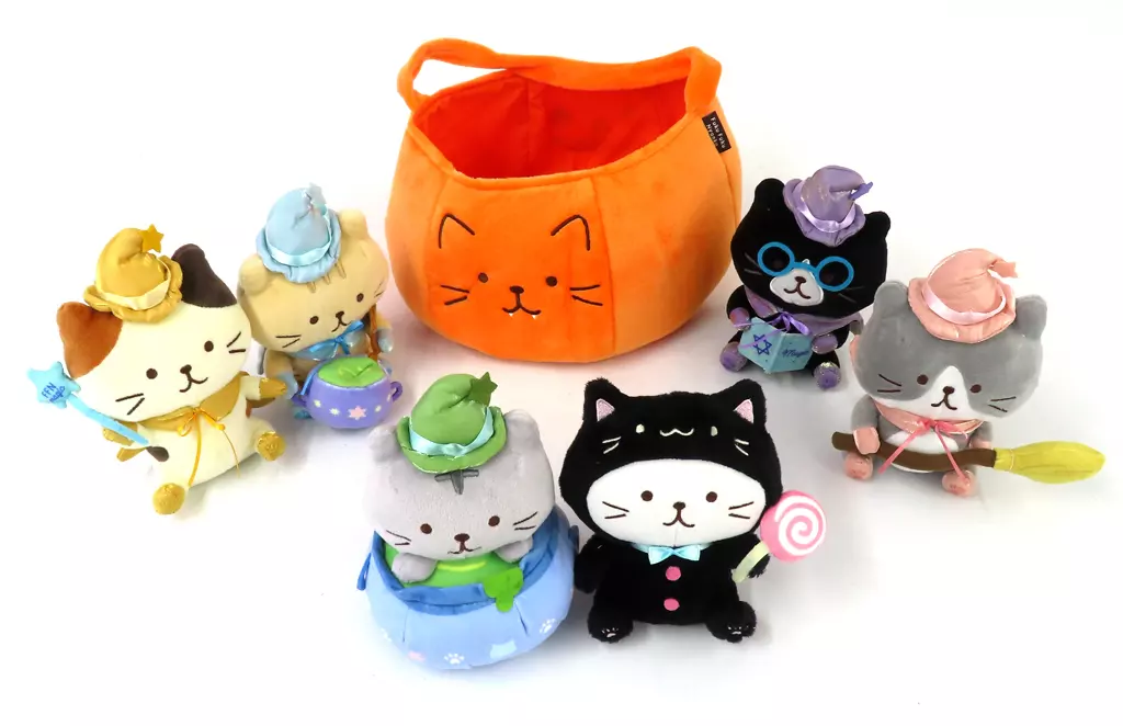 商品解説■「ふくふくにゃんこ」より、『ハロウィンセット(6体セット/魔法使い) ぬいぐるみ』が登場です。【セット内容】ハッチ、サバ太、クロ助、しろたまちゃん、チャチャ丸、ミケランジェロ、カボチャ【商品詳細】サイズ:全高約17cm(にゃんこ)