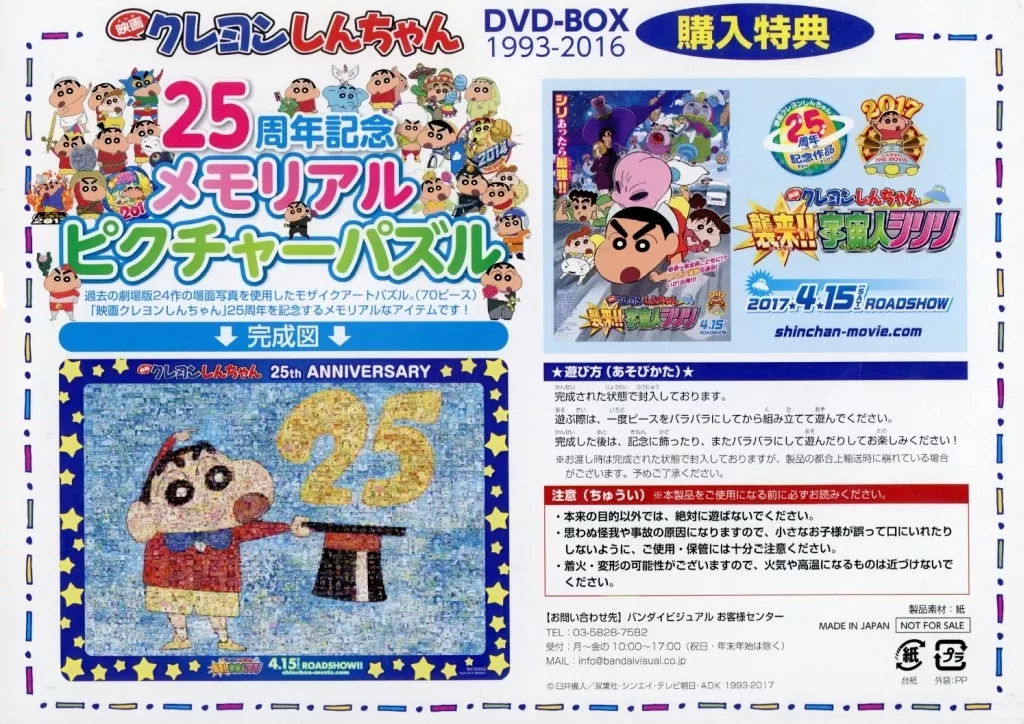 パズル 25周年記念メモリアルピクチャー 「クレヨンしんちゃん」 ジグソーパズル 70ピース 映画 クレヨンしんちゃん DVD-BOX 1993-2016購入特典