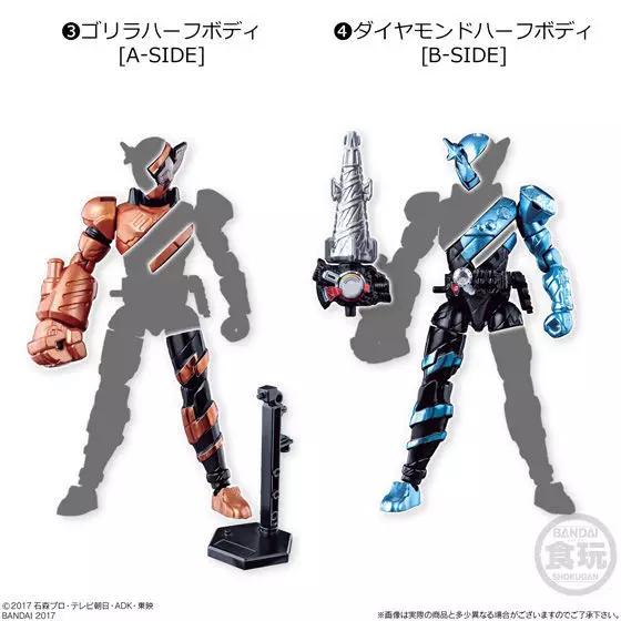仮面ライダービルドの半身を形成する「ハーフボディ」の組み合わせにより、様々な組み合わせのフォームを再現することが可能です。