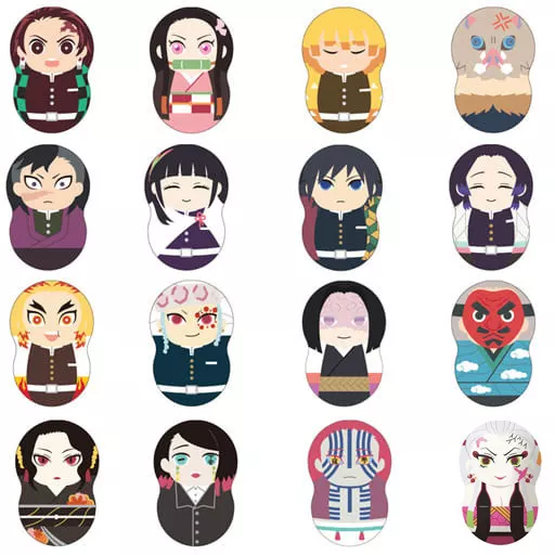 竈門炭治郎や竈門禰豆子をはじめとした、劇場版、テレビアニメに登場するキャラクターたち全16種が、一同にラインナップ。