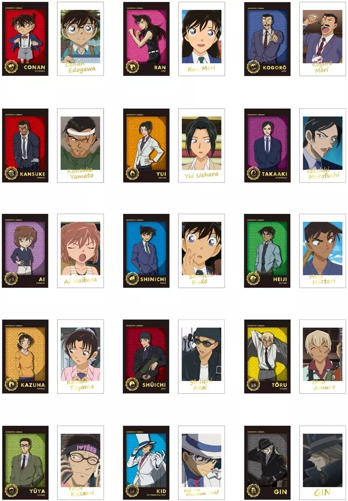 商品解説■名探偵コナンの人気キャラクター達が、インスタントフォト風カードで登場!豪華な箔押し仕様!!全15種セットです。【セット内容】1.江戸川コナン2.毛利蘭3.毛利小五郎4.大和敢助5.上原由衣6.諸伏高明7.灰原哀8.工藤新一9.服部平次10.遠山和葉11.赤井秀一12.安室透13.風見裕也14.怪盗キッド15.ジン【商品詳細】仕様:フォトカード2枚セットサイズ:86×54mm(C)青山剛昌/小学館・読売テレビ・TMS 1996