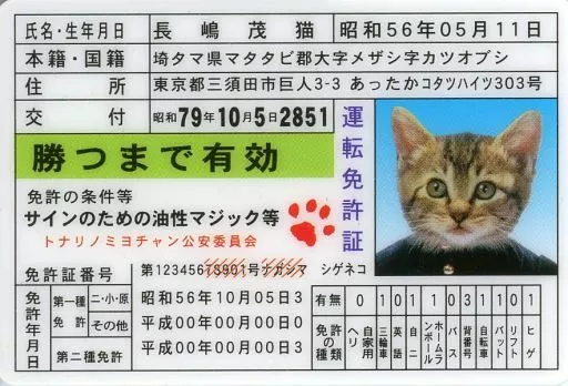 食玩 雑貨 長嶋 茂猫 「なめねこミニ免許証シリーズ」