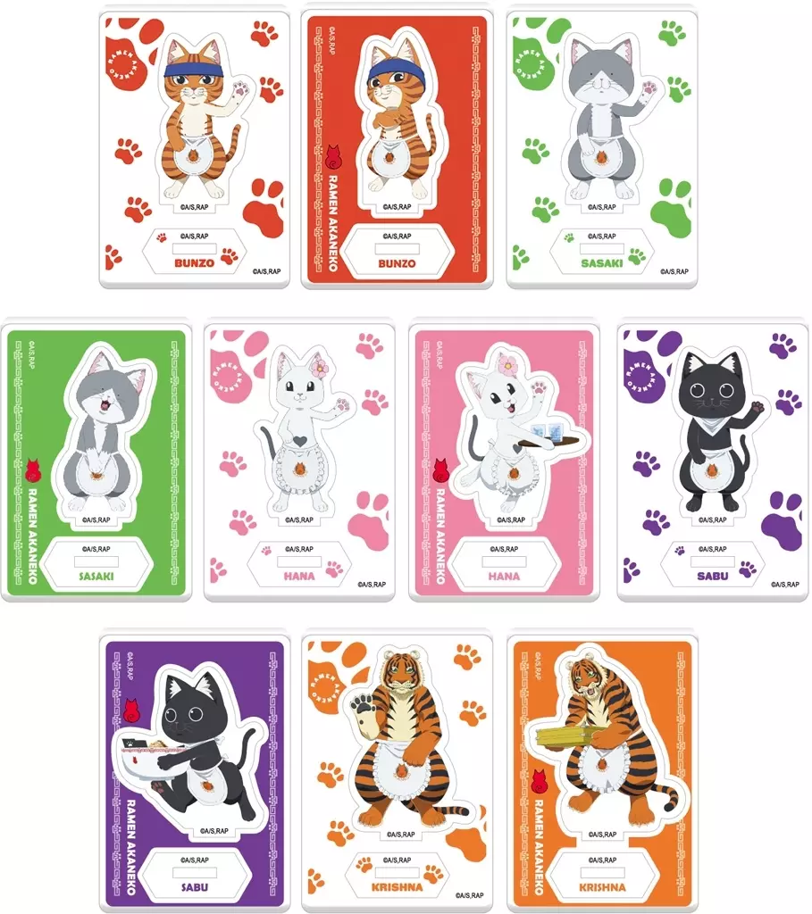商品解説■ラーメン赤猫 おまちどーアクリルスタンドが登場!!全10種セットです。【セット内容】1.文蔵A2.文蔵B3.佐々木A4.佐々木B5.ハナA6.ハナB7.サブA8.サブB9.クリシュナA10.クリシュナB【商品詳細】(C)アンギャマン/集英社・ラーメン赤猫製作委員会