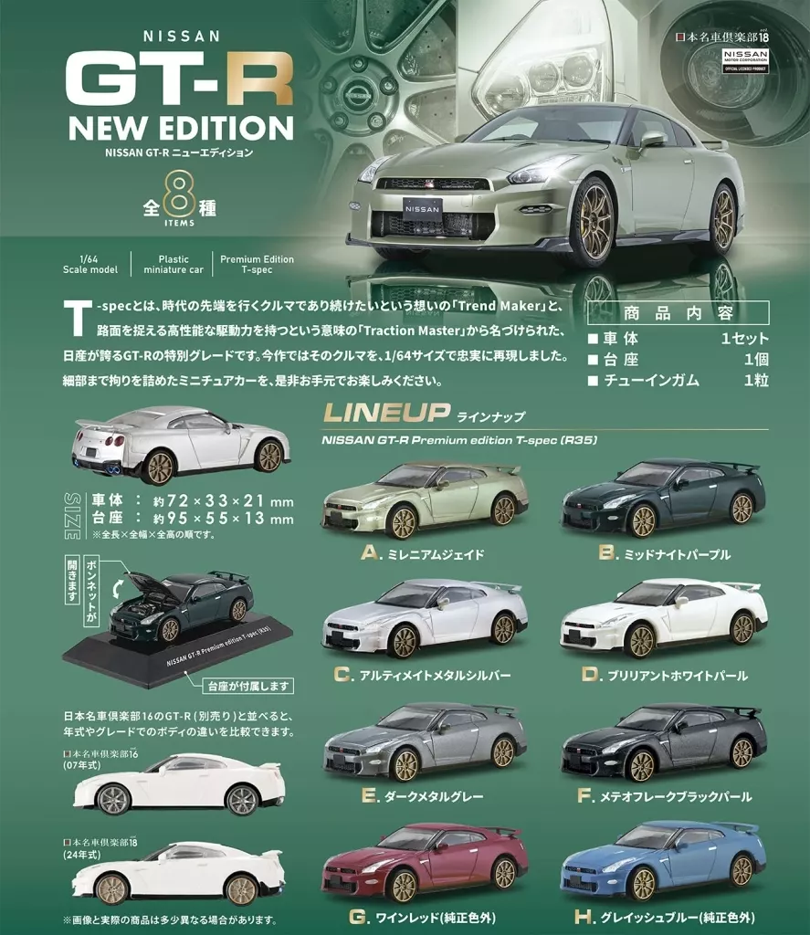 内容物(1パック):車体1セット+台座1個+チューインガム1粒