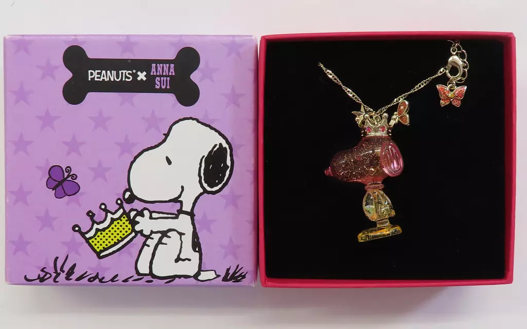 商品解説■「PEANUTS(SNOOPY)×ANNA SUI」グッズの『ネックレス』です。【商品詳細】サイズ:チェーンの長さ:約65cm+5cm素材:合金、合成樹脂、ガラス※中古の金属製アクセサリーに関しては、商品に軽度の擦れ傷・汚れなどがある場合がございます。予めご了承下さい。